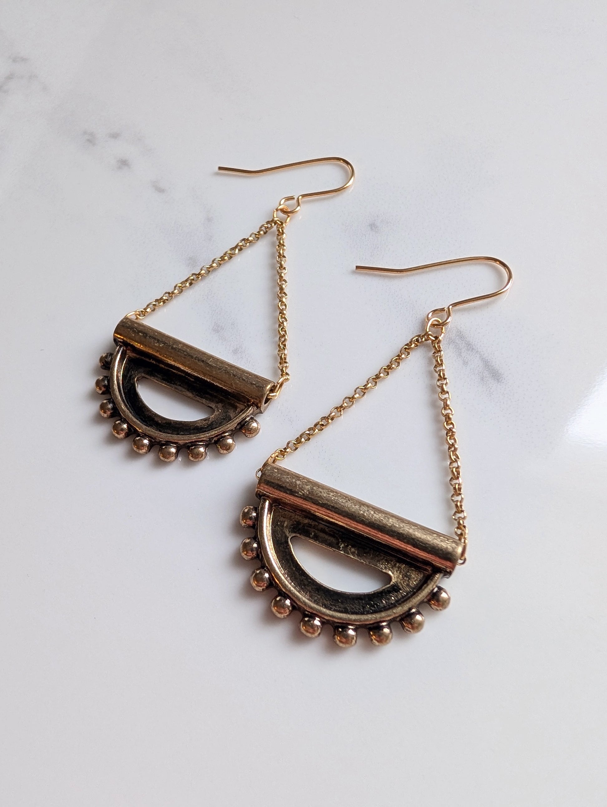 Geometric Brass Chain Earrings